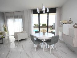 Diese Eigenschaft, mit den neuesten modernen Designs und hochwertige Oberflächen, besteht aus drei Doppel-Schlafzimmer (alle mit Einbauschränken), zwei Bäder, voll ausgestattete Küche mit direktem Zugang zu einer kleinen Terrasse auf der Rückseite und offenen Wohn- / Essbereich, die über breite Terrassentüren in den privaten Garten mit Swimmingpool und Parkplatz abseits der Straße. Die 74 m2 große Dachterrasse ist über eine Innentreppe vom ersten Stock aus zu erreichen und bietet einen fantastischen Blick auf die umliegende Landschaft in Richtung Villamartin.