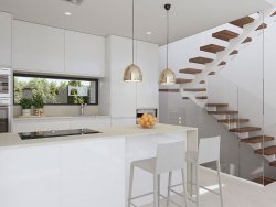 Diese Villen werden auf Grundstücken zwischen 450 und 580 m² gebaut und sind auf zwei Etagen verteilt.