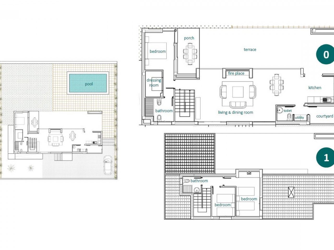 Die mediterranen Häuser befinden sich auf großzügigen Grundstücken, die jeweils über einen privaten Pool, einen vollständig angelegten Garten und einen Parkplatz verfügen.