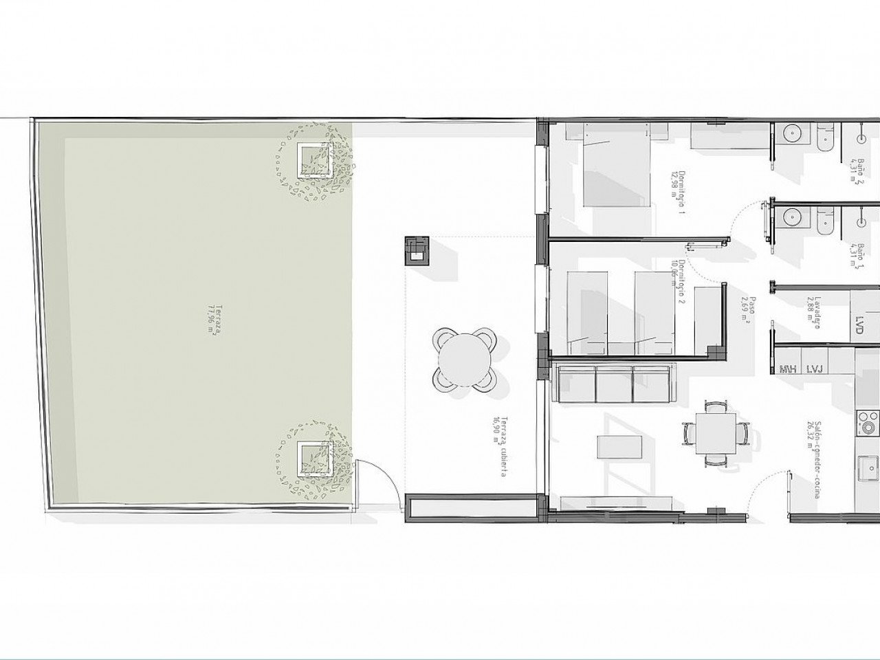 Diese neue Wohnanlage besteht aus 60 hochwertigen Wohnungen, die sich auf 5 Blöcke mit geringer Dichte verteilen, mit nur zwei Wohnungen pro Stockwerk. Sie haben die Wahl zwischen 2- und 3-Schlafzimmer-Wohnungen, bei denen Funktionalität, Komfort und Stil im Vordergrund stehen. Es gibt verschiedene Optionen: Erdgeschosse mit Privatgärten, Wohnungen im mittleren Stockwerk mit großzügigen Terrassen und Penthäuser im obersten Stockwerk mit großen Solarien einschließlich Sommerküche und Pergola mit Sonnenkollektoren.