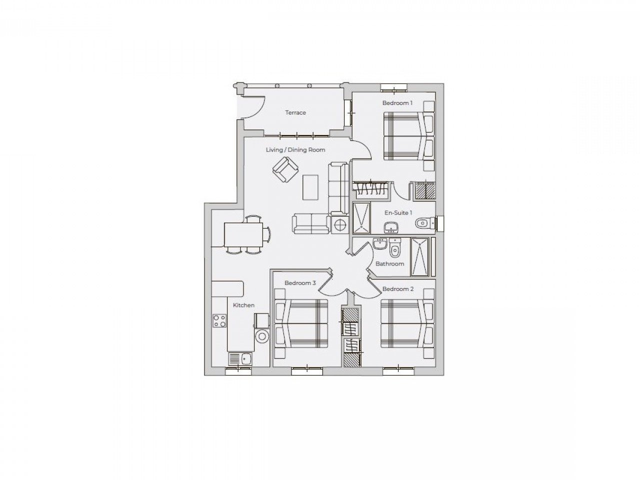 Das Äußere der Wohnungen hat das Erbe der Tradition bewahrt, während zeitgenössisches Design und natürliches Licht die herausragenden Merkmale sind. Die Wohnräume führen auf eine großzügige überdachte Veranda. Jede Wohnung verfügt über einen Parkplatz, einen Garten, einen Swimmingpool und eine private Sonnenterrasse.