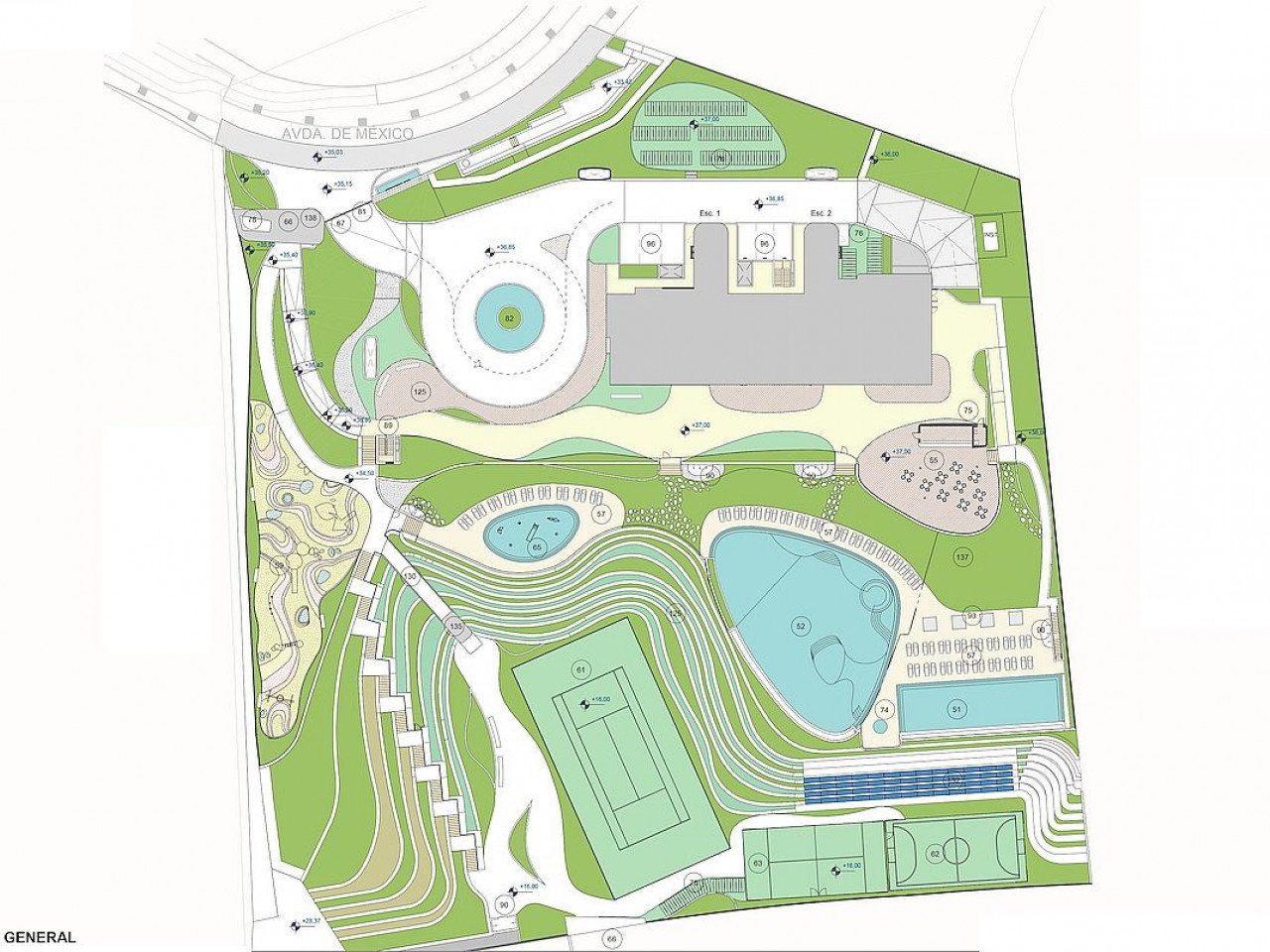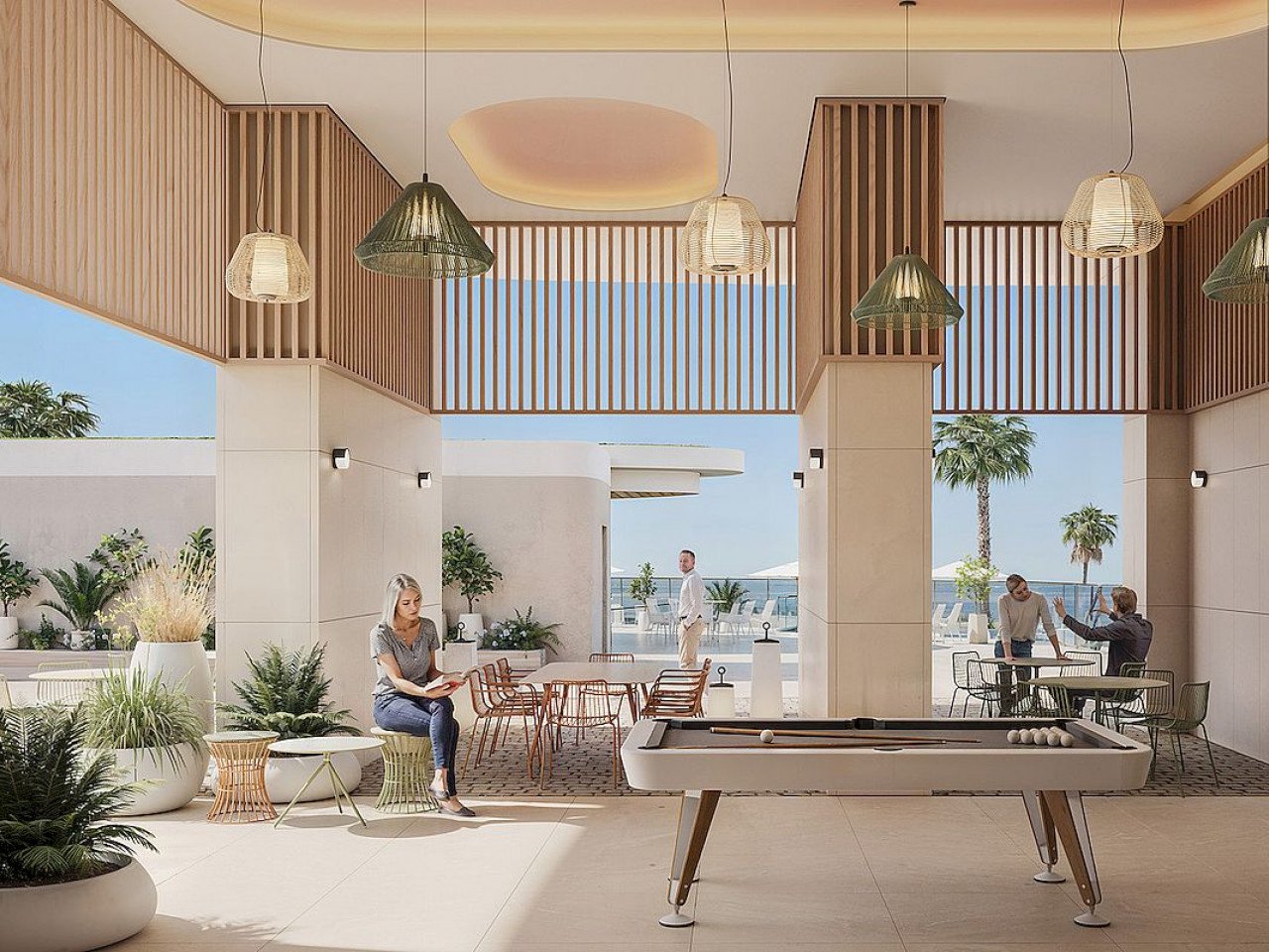 Die Urbanisation ist auf zwei landschaftlich gestalteten Hauptplattformen organisiert, die auf verschiedenen Ebenen einen freien Blick auf das Meer bieten. Auf der oberen Plattform befinden sich die wichtigsten Gemeinschafts- und Sozialräume des Projekts, darunter der Zugangsplatz, die Empfangsräume und Sozialbereiche, die Swimmingpools für Erwachsene, Kinder, beheizte Pools und Whirlpools, der Spielbereich für Kinder, der Bereich für Sportbahnen und der Chill-out-Bereich mit Getränkeservice. Die Urbanisation verfügt über einen großen Fahrradabstellplatz im Freien, umgeben von Gärten und einer Zufahrtsrampe zur Tiefgarage.