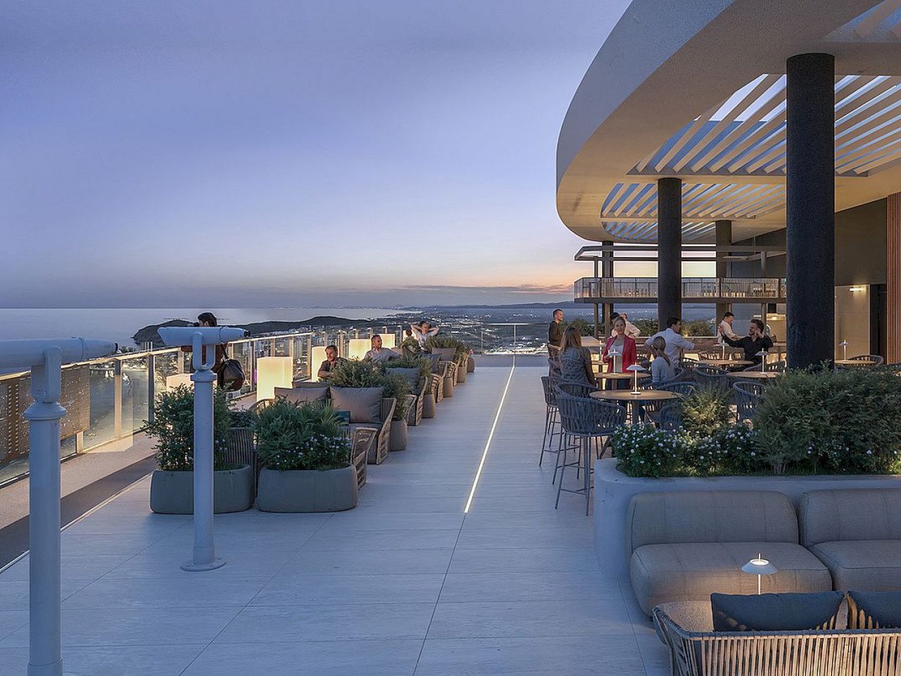Auf der 63. Etage, dem höchsten Punkt des Gebäudes, befindet sich Europas höchstgelegene Dachterrasse, von der aus man den weitreichendsten und privilegiertesten Panoramablick auf das Mittelmeer genießen kann, einschließlich Sky Bar und Observatorium.