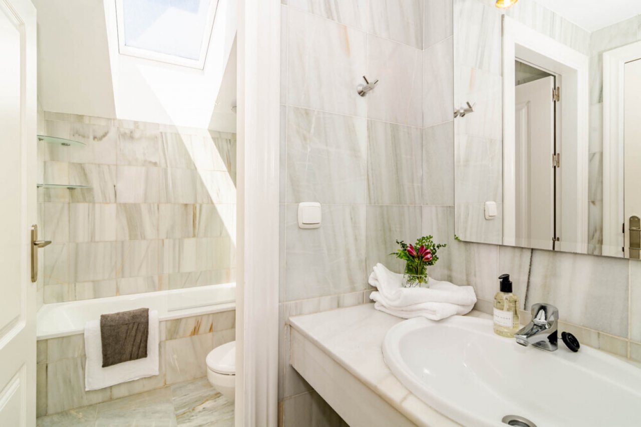 Erstklassige Lage: Diese Wohnung bietet eine unvergleichliche Nähe zu begehrten Annehmlichkeiten. Von renommierten Golfplätzen und Gastronomiebetrieben bis hin zu belebten Häfen, von charmanten Boutiquen bis zu sonnenverwöhnten Stränden, jede Annehmlichkeit ist mühelos erreichbar. Faszinierende Merkmale: Südliche Ausrichtung, tadelloser Zustand, Gemeinschaftspool, Klimakontrolle: Klimaanlage, Panoramablicke: Beeindruckende Ausblicke auf das Meer, die Berge und den Pool. Unverwechselbare Ausstattungen: Überdachte Terrasse, Einbauschränke, Solarium, WLAN, erlesener Marmorboden, Nähe zur örtlichen Kirche. Möbel und Einrichtungen: Mit akribischer Liebe zum Detail präsentiert, strahlt das Anwesen Opulenz aus mit einer voll ausgestatteten Küche und Zugang zum Gemeinschaftsgarten, was eine Atmosphäre der ruhigen Abgeschiedenheit innerhalb einer lebendigen Gemeinschaft fördert. Sicherheit und Parken: Die Sicherheitsstandards werden durch gesicherten Zugang und elektrische Jalousien erhöht. Parkmöglichkeiten sind durchdacht entlang der angrenzenden Straßen angeordnet. Diese Immobilie stellt eine außergewöhnliche Gelegenheit für diejenigen dar, die eine günstige Investition oder ein modernes Ferienhaus suchen.