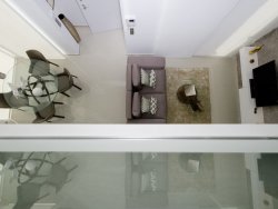The living and dining room is large and spacious and there is a modern open kitchen.
