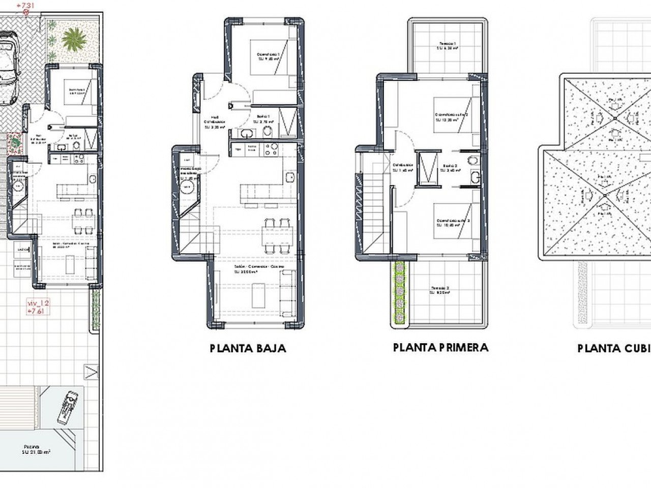 Villen in Los Alcazares mit 3 Schlafzimmern und 2 Bädern, privatem Schwimmbad und Parkplatz auf eigenem Grundstück.