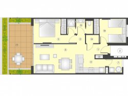 Die erste Wohnanlage, Laguna Rosa, wird 240 Wohnungen unterschiedlicher Art umfassen, darunter Apartments, Bungalows, Doppelhaushälften mit 1, 2 und 3 Schlafzimmern sowie freistehende Villen mit 2 und 3 Badezimmern.