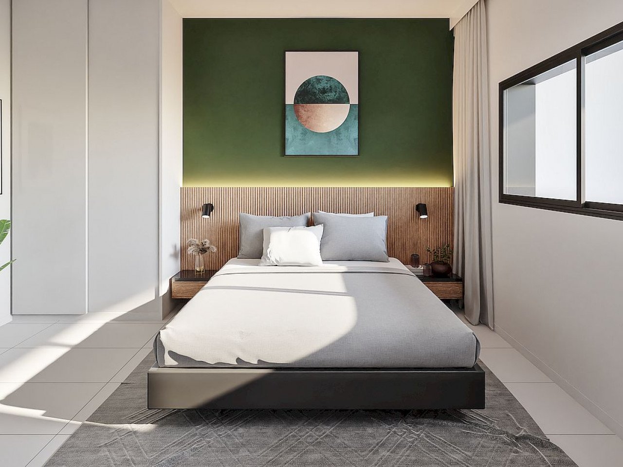 Die Anlage wird über sieben Stockwerke verteilte Wohnungen mit zwei oder drei Schlafzimmern umfassen. Die Wohnungen sind hell und geräumig und mit sehr modernen Materialien hochwertig ausgestattet.