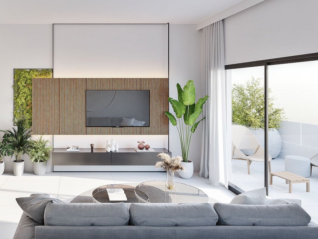 Dies ist eine neue Wohnanlage mit einem innovativen Design von Zwei- und Dreizimmerwohnungen mit großen Terrassen und Gemeinschaftspools im beliebten Ort San Miguel de Salinas.