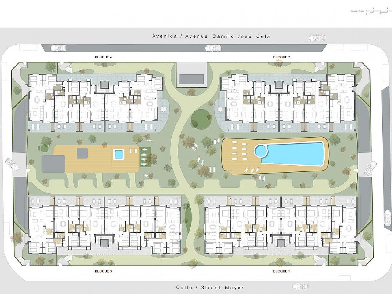 Diese Wohnanlage befindet sich in Pilar de la Horadada, nur 2 km vom Strand entfernt und in Gehweite zu mehreren Supermärkten, Restaurants, Bars, Geschäften, Apotheken und allen notwendigen Annehmlichkeiten.