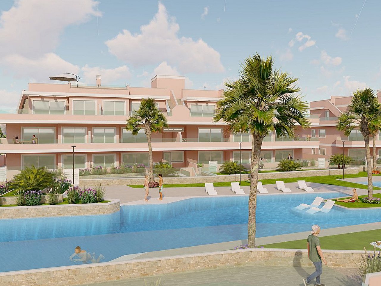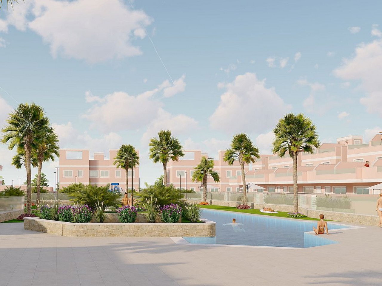 Die Wohnanlage verfügt über großzügige Gemeinschaftsbereiche, darunter ein Gemeinschaftsschwimmbad, angelegte Gärten und einen Spielplatz für Kinder, ideal für die ganze Familie.