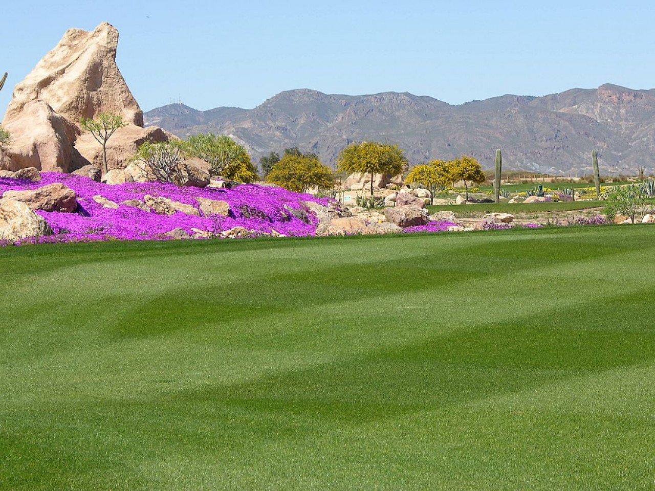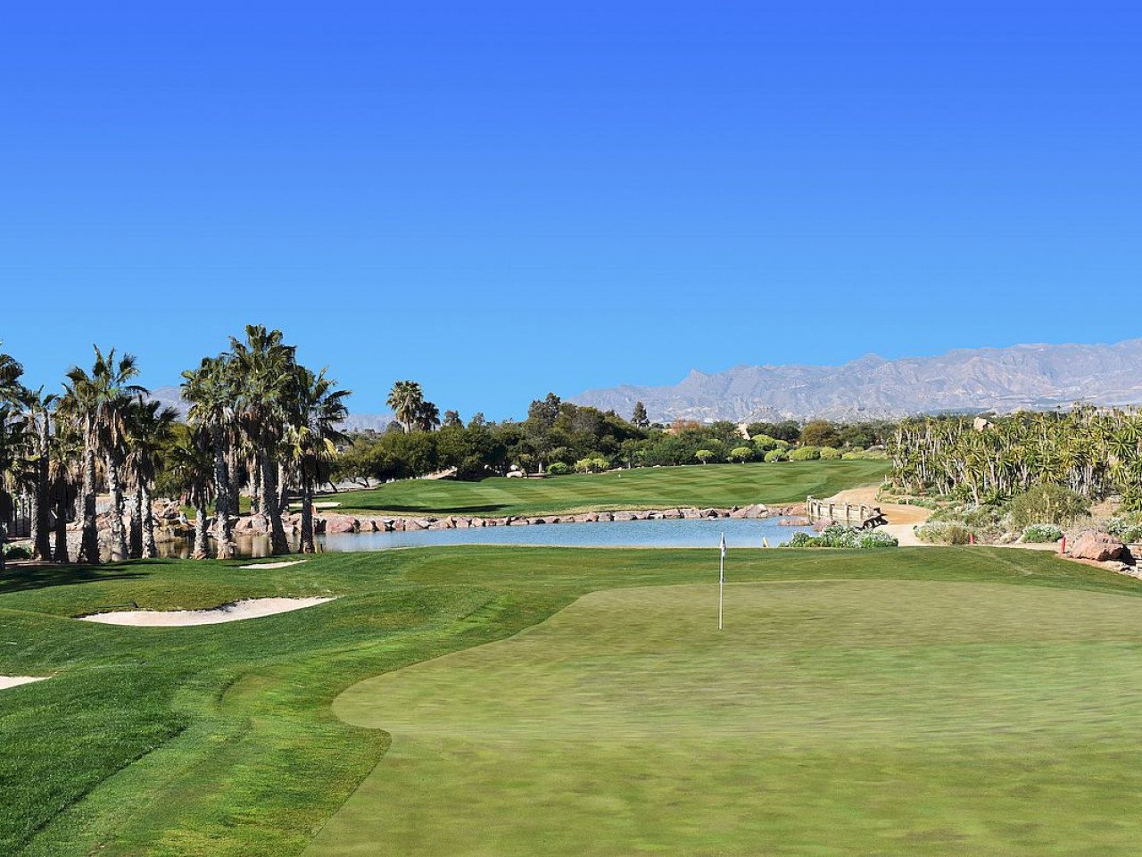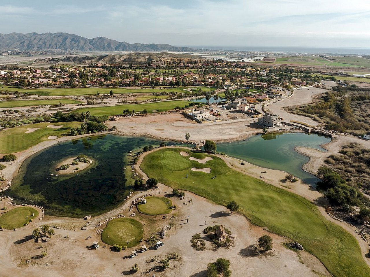Das Desert Springs Resort ist einzigartig und liegt in einer der ruhigsten und begehrtesten Enklaven an der andalusischen Küste in Cuevas de Almanzora und Vera in Almería. Es ist ein preisgekröntes Golf-, Sport- und Freizeitresort inmitten von Felsen und smaragdgrünen Fairways, eingebettet in ein Luxusanwesen. Das Resort ist von ungestörter Natur umgeben und bietet spektakuläre Ausblicke auf markante Bergketten und das Mittelmeer. Desert Springs hat eine unschlagbare Lage auf einem Plateau, das sich über die Ebene des Almanzora-Flusses erhebt, nur wenige Kilometer landeinwärts von den Badeorten Vera und Villaricos. Die nächstgelegene Stadt ist der Marktflecken Cuevas de Almanzora, und auch in Palomares gibt es Einkaufsmöglichkeiten. Der Strand und das hübsche Hafenstädtchen Villaricos liegen gleich hinter Palomares und verfügen über eine Vielzahl guter Bars und Restaurants, darunter eine ausgezeichnete Strandbar. Der internationale Flughafen Almeria ist über die A7 in 45 Minuten, Murcia/Corvera in 70 Minuten und Alicante in 110 Minuten mit dem Auto zu erreichen.